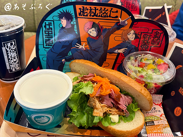 呪術廻戦・ザ・リアル 4-D の向かい側に位置するビバリーヒルズ・ブランジェリーでは今、コラボフードが展開されています。